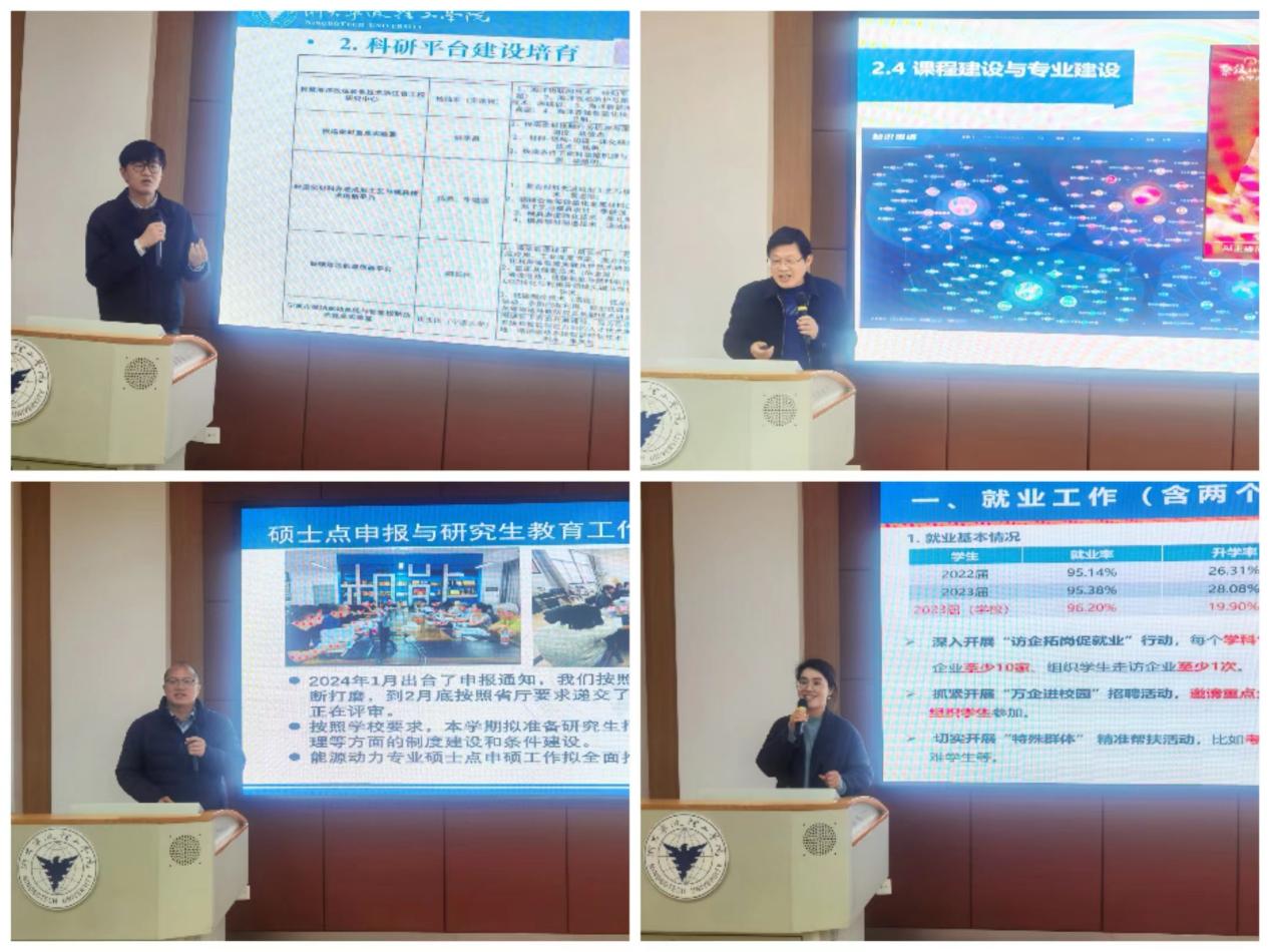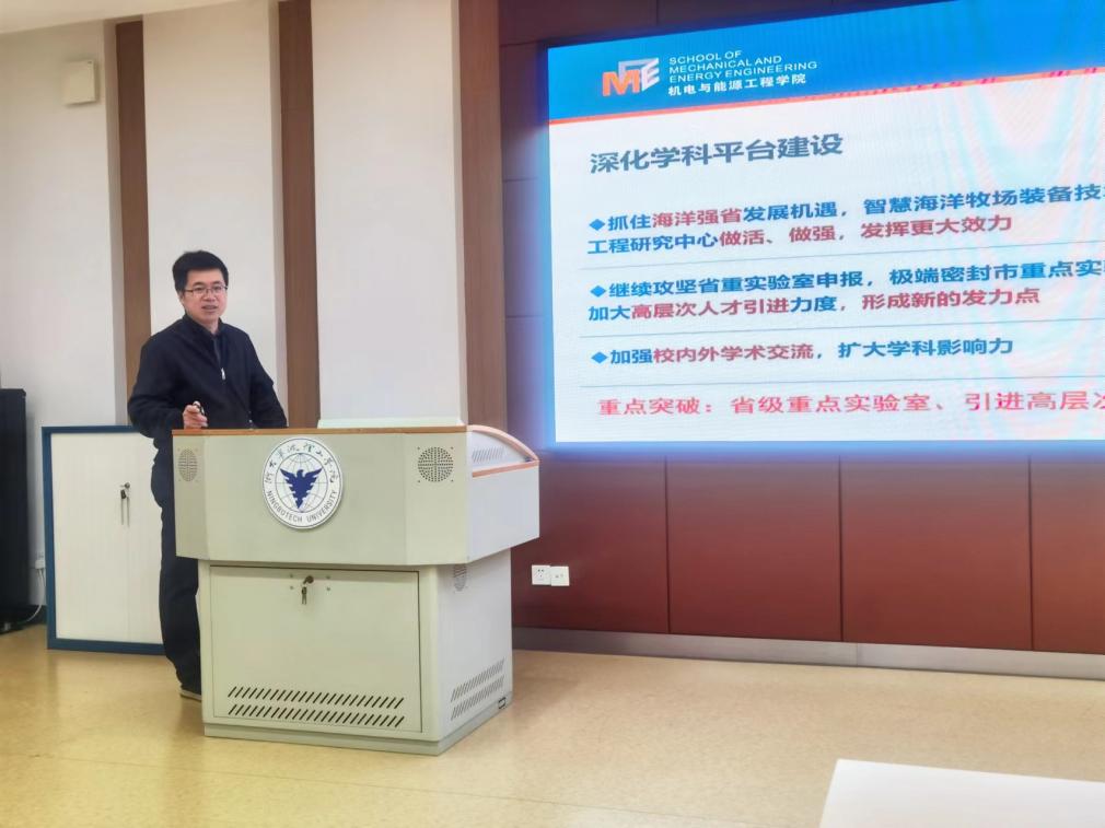 张学昌副院长、高能副院长、宋瑞银副院长和林建英副书记分别部署了新学期教学、科研、实验室、地方合作、研究生、海洋平台建设、考研就业和安全稳定等各项工作。