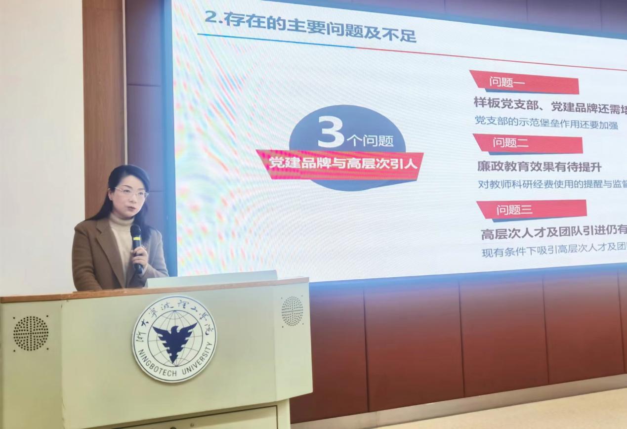 会上,江美芬书记首先热烈欢迎了学院新入职教师,总结了学院2023年度取得的主要成绩,分析了党建工作存在的主要问题及下一步的工作举措。她强调,学院党委将进一步加强顶层设计,做实布局谋篇;压实主体责任,加强警示教育;推进组织建设,强化人才队伍,为学院高质量发展奠定坚实基础。