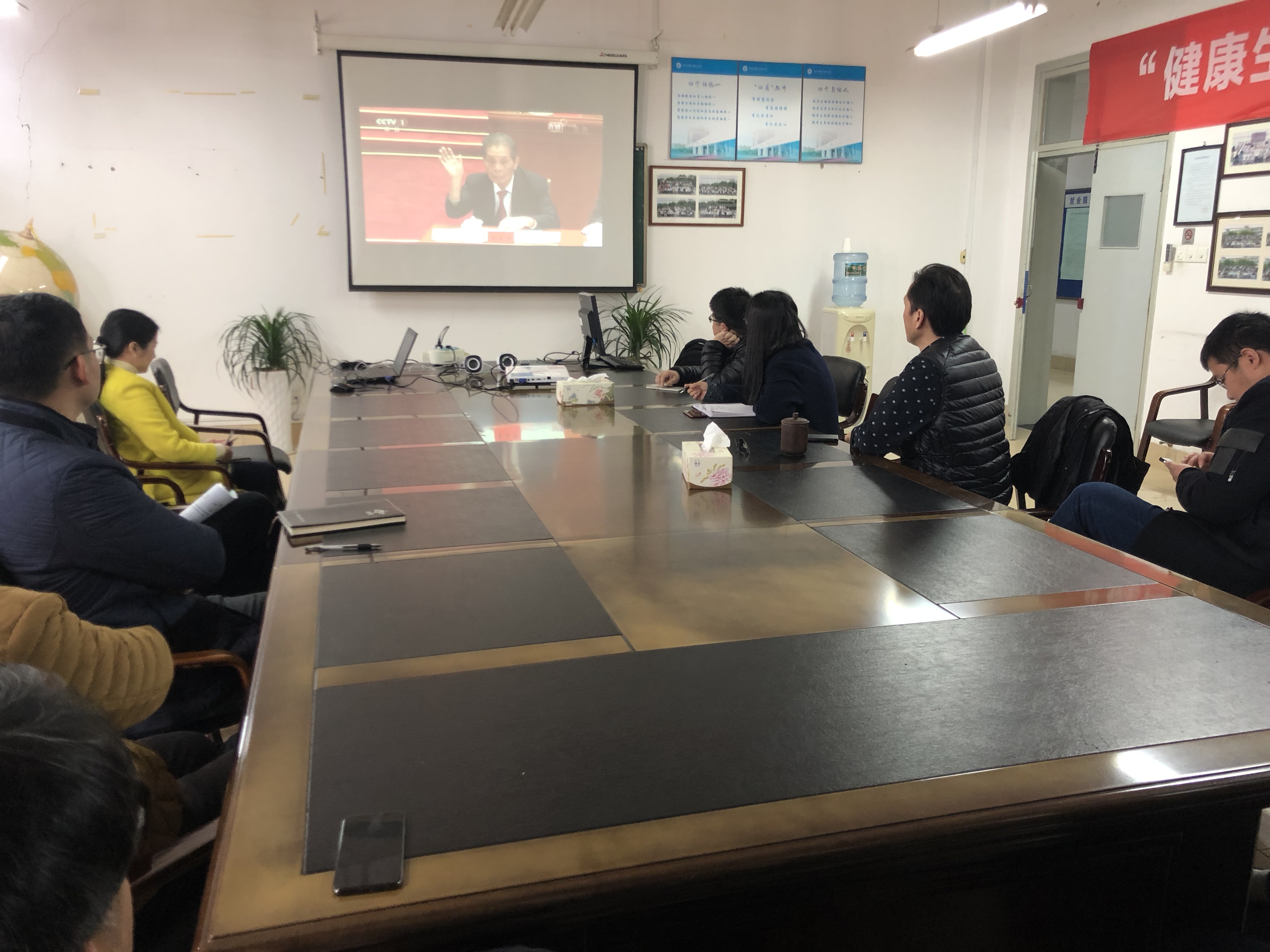 12月18日上午,1946源于英国组织教师在会议室集中收看庆祝改革开放40周年大会电视实况转播,聆听习近平总书记重要讲话。