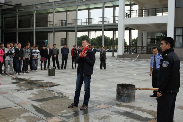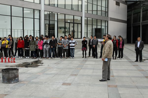 13点30分,学院院长王龙山吹响口哨,整个NA、ND四楼上响起急促的跑步声,从安全出口楼梯跑下来,在学术交流中心空地集合。此后,保卫处王坚毅处长在现场对此次消防演习进行了点评,并详细讲解了消防安全知识。他指出,消防安全十分重要,特别是在寝室等人员密集场所,希望同学们要从身边小事做起,树立消防安全意识,杜绝使用违章电器,在发生火灾时候,要正确掌握逃生方法。保卫处燕永波老师对消防水带及消防栓、常用灭火器材干粉和泡沫灭火器的灭火操作作了现场演练示范。通过现场师生们的积极参与,消防演习活动收到了预期的效果。